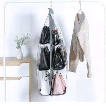 کاور کیف در رنگ های نسکافه ایی و طوسی با طلق محکم و منعطف و پارچه اسپان بان ۹۰ گرم که ضخیم و قابل شستشو هست. قابلیت آویزان شدن دارد و با یک چوب لباسی به راحتی از کمد لباس شما آویزان شده و تعداد ۶ عدد کیف بزرگ مرتب میکند.